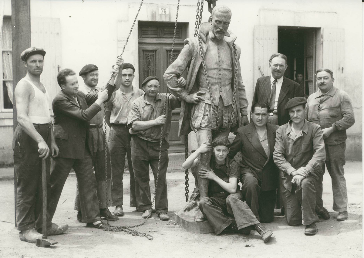 Or, pendant la seconde guerre mondiale, de nombreux bronzes furent menacés de fonte par l’armée allemande comme ressource pour créer des munitions. Hilaire Boursier, serrurier ancenien, qui devait remettre la statue, fit acte de résistance et l’enterra dans une fosse creusée dans la cour de son atelier. À la libération, en octobre 1944, la statue fut sortie de terre et remise à sa place. Ce fut l’occasion d’une grande fête.