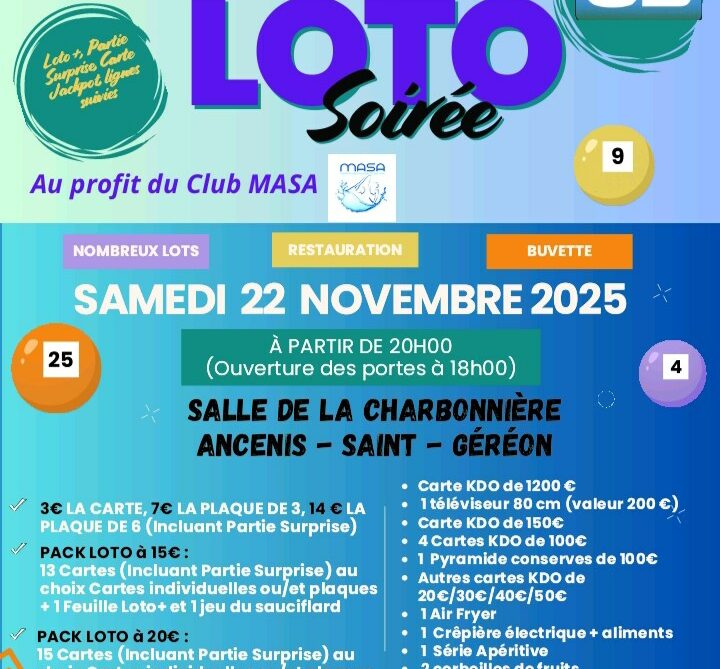 Ouverture des portes à partir de 18h et début du loto à 20h.